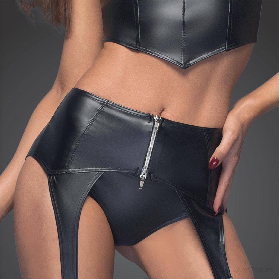 Noir Handmade F166 sukahoidja on imelise wet-look stiiliga, mis on eest lukuga avatav. Sukahoidjal on neli sukapaela ja kõrge pihaga disain, mis toob esile teie naiselikud vormid ja kumerused.