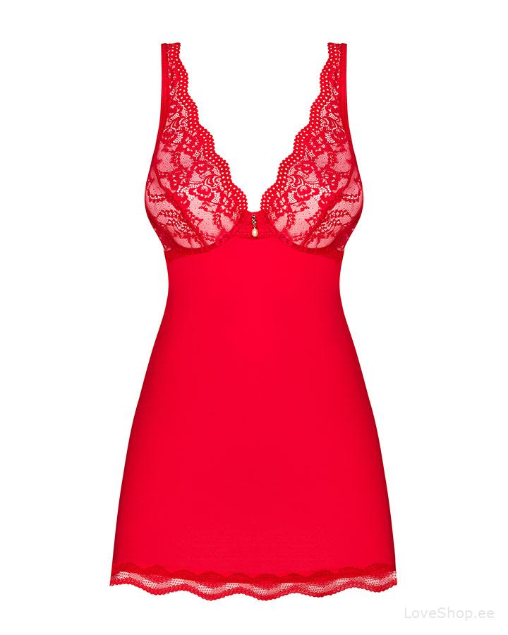 Obsessive Luvae babydolli sensuaalne pits rõhutab teie rinnakorvi ning avatud seljaosa muudab teid vastupandamatuks. Babydoll on valmistatud elastsest punasest kangast, mida kaunistab seksikas lillemotiiviga pits.