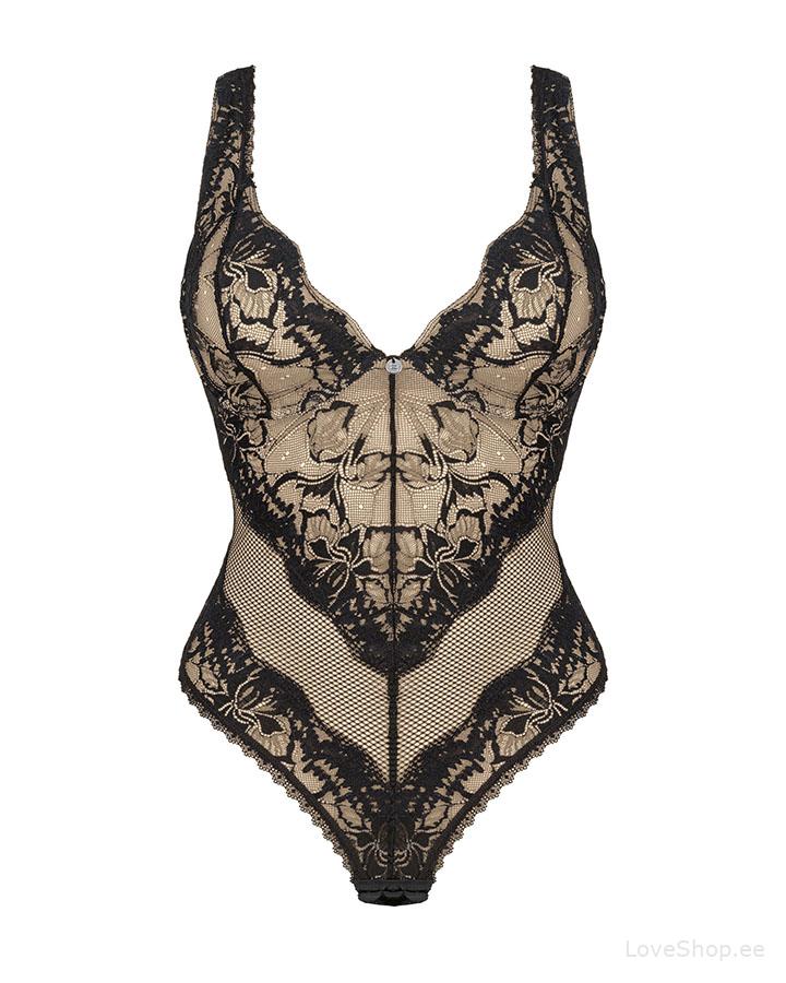 Obsessive Olvidia body on valmistatud sensuaalsest mustast pitsist, mis on kombineeritud kelmika beeži kangaga. Body intigreeriv lõige muudab teid veelgi seksikamaks ning rõhutab vöökohta. Lisaks on body varustatud tugikaartega, mis rõhutavad teie rindu.