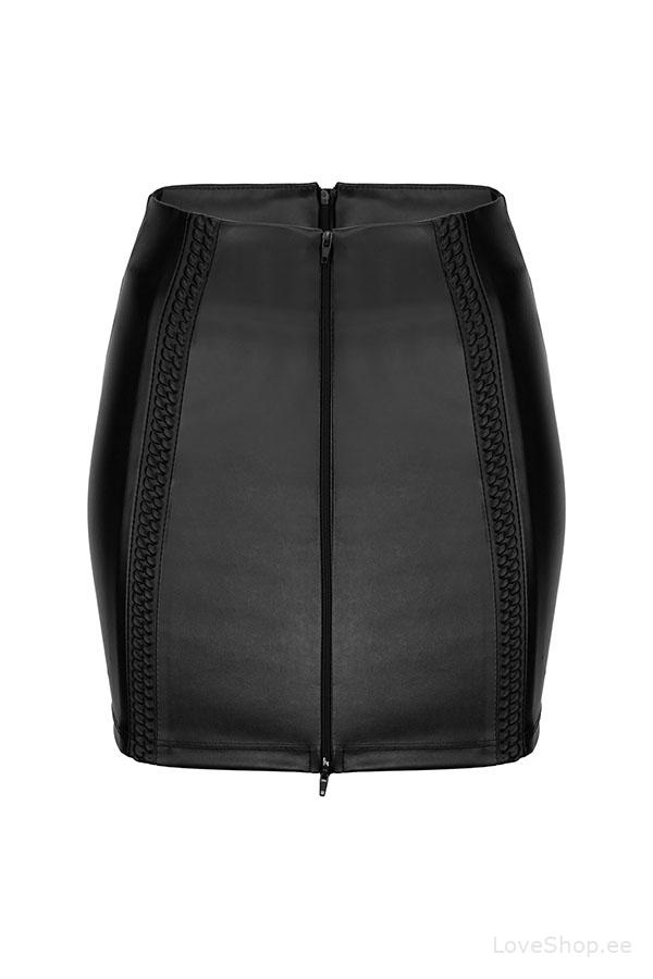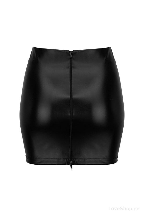 Noir Handmade F171 miniseelik on maitseka wet-look stiiliga, mis on nii eest kui ka tagant poolt täielikult lukuga avatav. Miniseelikul on esi osas stiilsed kaunistused.