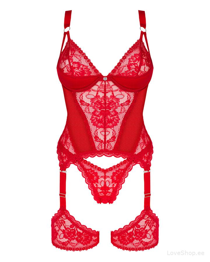 Veripunane Obsessive Belovya korsett muudab saabuvad jõuluõhtud eriliseks ja meeldejäävaks. Korsett on valmistatud elegantsest pitsist, mis on kaunistatud erinevate lillemotiividega.