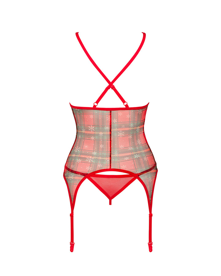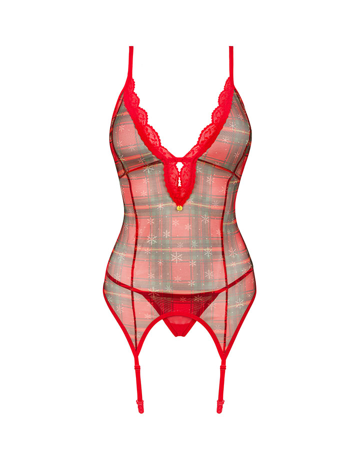 Obsessive Jollymore korsett on jõuluteemaline pesukomplekti osa, mis kiirgab elegantsi ja kirge. Selle korseti disain on võrratult detailne, kasutades kvaliteetset pitsi ja satiinist jõulutemaatikat, et luua muljetavaldav ja pilkupüüdev välimus.