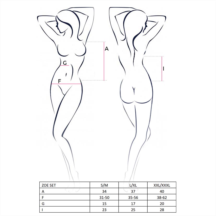 Siidine ja seksikas Passion pesubrändi korsett Zoe. Läbipaistev, veniv ja mugav materjal tagab ideaalse sobivuse, samal ajal rõhutades ja tuues esile naiseliku ilu. Komplekti kuuluvad ka fotol olevad stringid. Saadaval suurustes S/M ja L/XL.