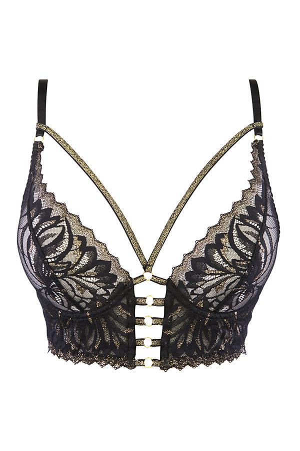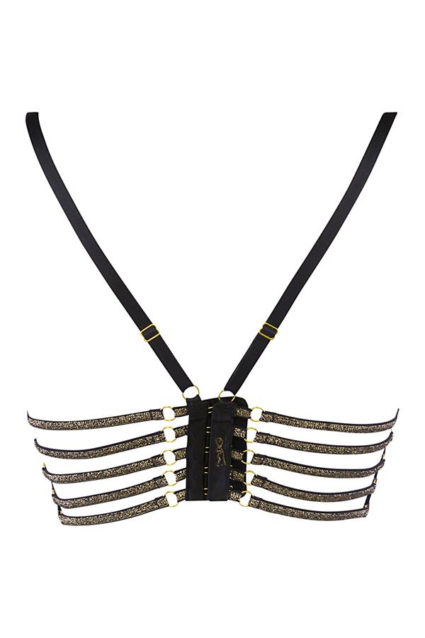 Musta ja kuldse pitsiga ning painduvate plastist alustraatidega poolkorsett, mis sobib ideaalselt iga rinnakorviga. Poolkorseti alumine kui ka tagumine osa ühendatud omavahel kuldsete rõngaste abil.