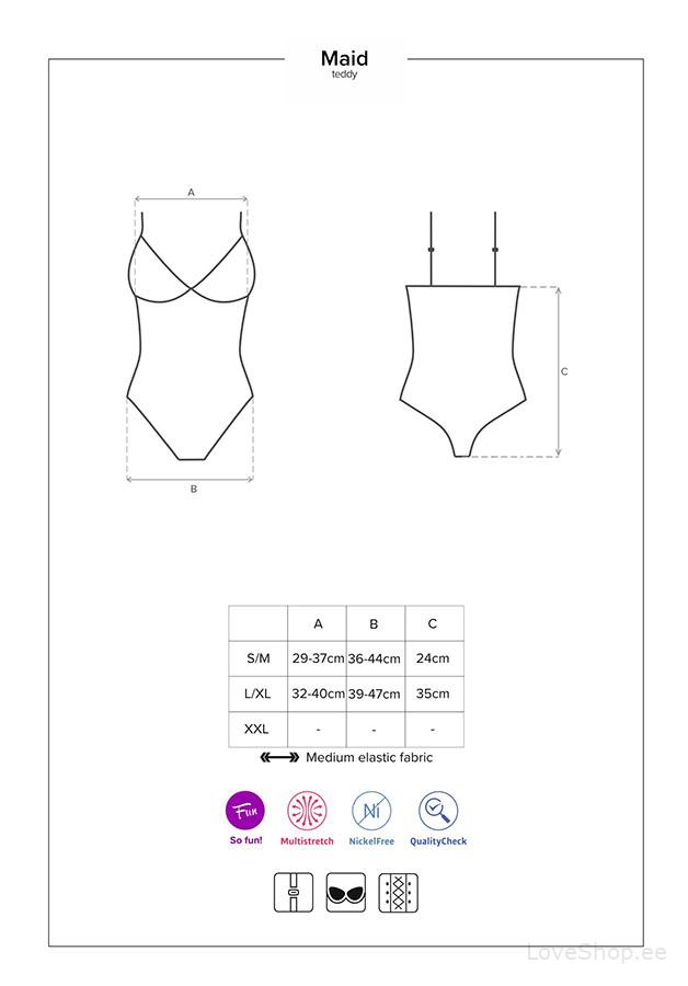 Obsessive Maid on sensuaalne 4-osaline kostüüm, mis sobib ideaalselt erinevateks rollimängudeks. Hellitage oma kaaslast selle kemika toatüdruku kostüümiga.