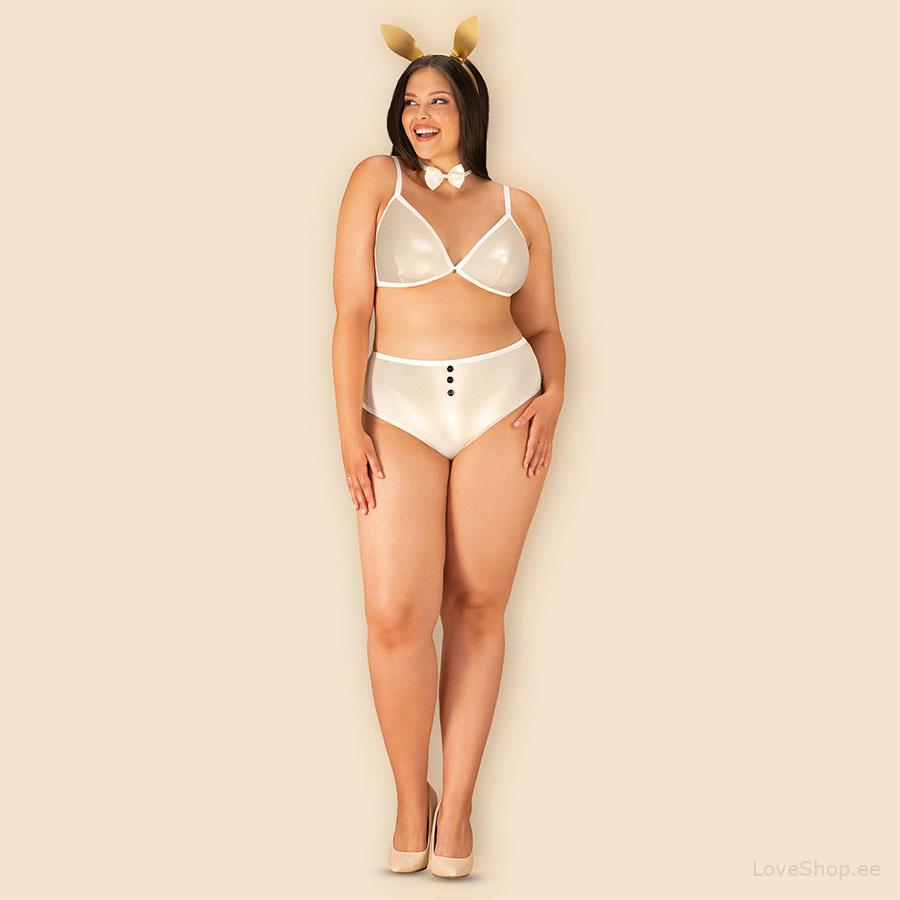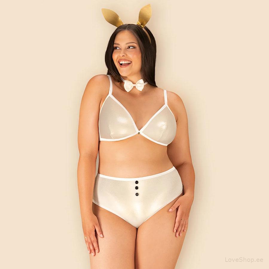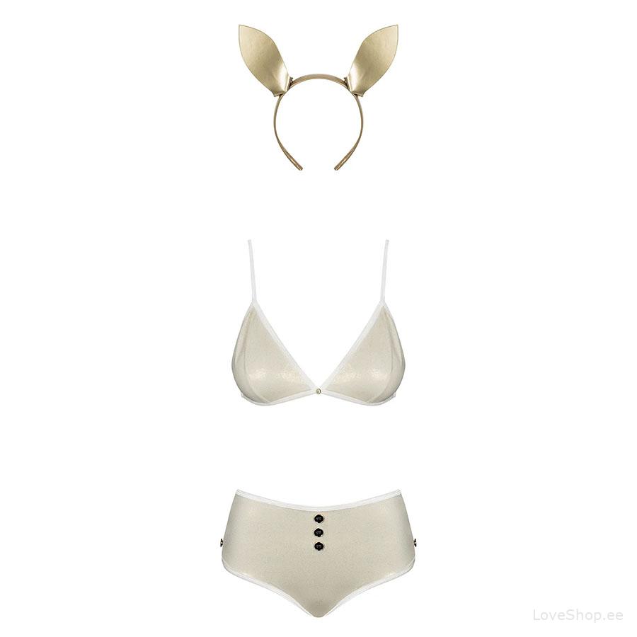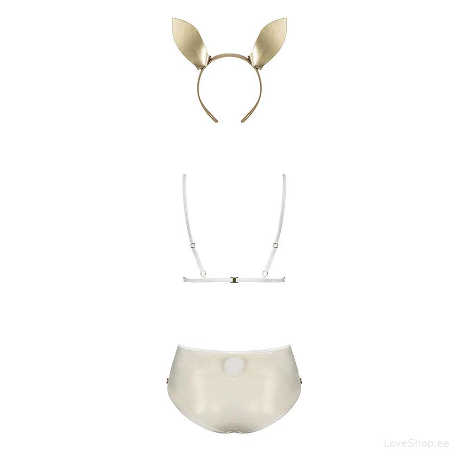 Obsessive Neo Goldes jänese teemaline kostüüm on valmistatud läikiva pärli efektiga kangast, mis toob suurepäraselt esile naiselikud vormid ja kumerused.