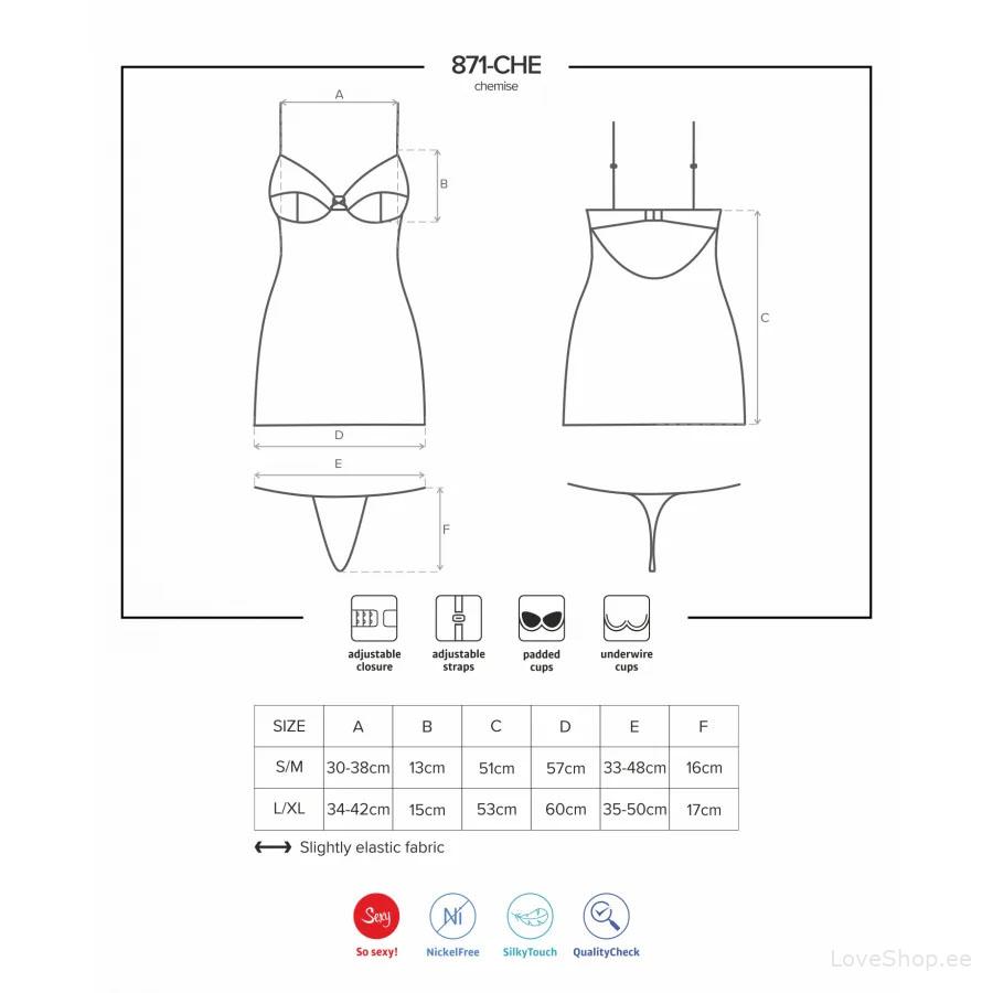 Obsessive 871 on luksusliku disaini ja tegumoega öösärk, mis on valmistatud siidiselt pehmest satiinist. Öösärk istub ideaalselt selga ning toob esile võrratud naiselikud kumerused ja vormid. Suurepärane kingiidee oma kallimale sünnipäeva või tähtpäeva puhul.