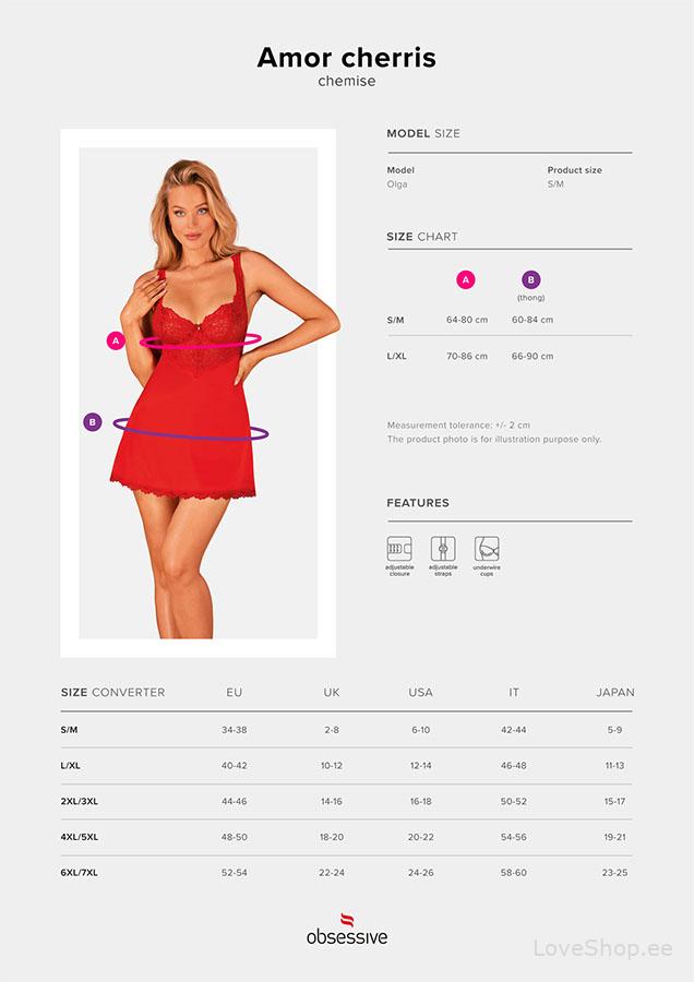 Obsessive Amor Cherris öösärgi teevad eriliseks selle naiselik lõige ja sügavpunane toon. Tegemist on väga mugava ja üliseksika öösärgiga, mida te ei soovigi seljast võtta. Rinnakorvi osa on valmistatud sensuaalsest pitsist ning tugikaared rõhutavad veelgi rohkem teie rindu.