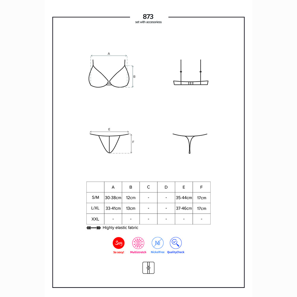 Obsessive pesukomplektide, rinnahoidjate, toppide, korsettide, seelikute, öösärkide, bodide ja hommikumantlite ümbermõõdud. Stringide, püksikute ja sukavööde puhul kasuta tabelis ainult puusaümbermõõtu.