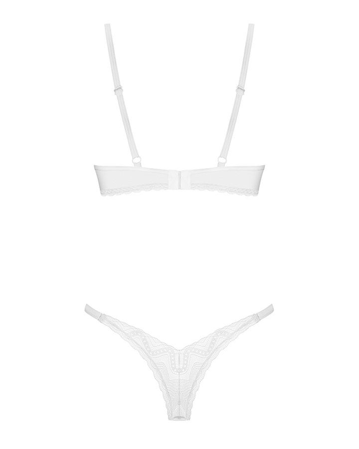 Obsessive Alissium 2-osaline pesukomplekt on elegantne ja võrgutav valik, mis ühendab endas klassikalise pesustiili ja kaasaegse disaini. Valge värvus ja keerukad geomeetrilised mustrid loovad kütkestava kontrasti, sütitades kirge ja intriigi.
