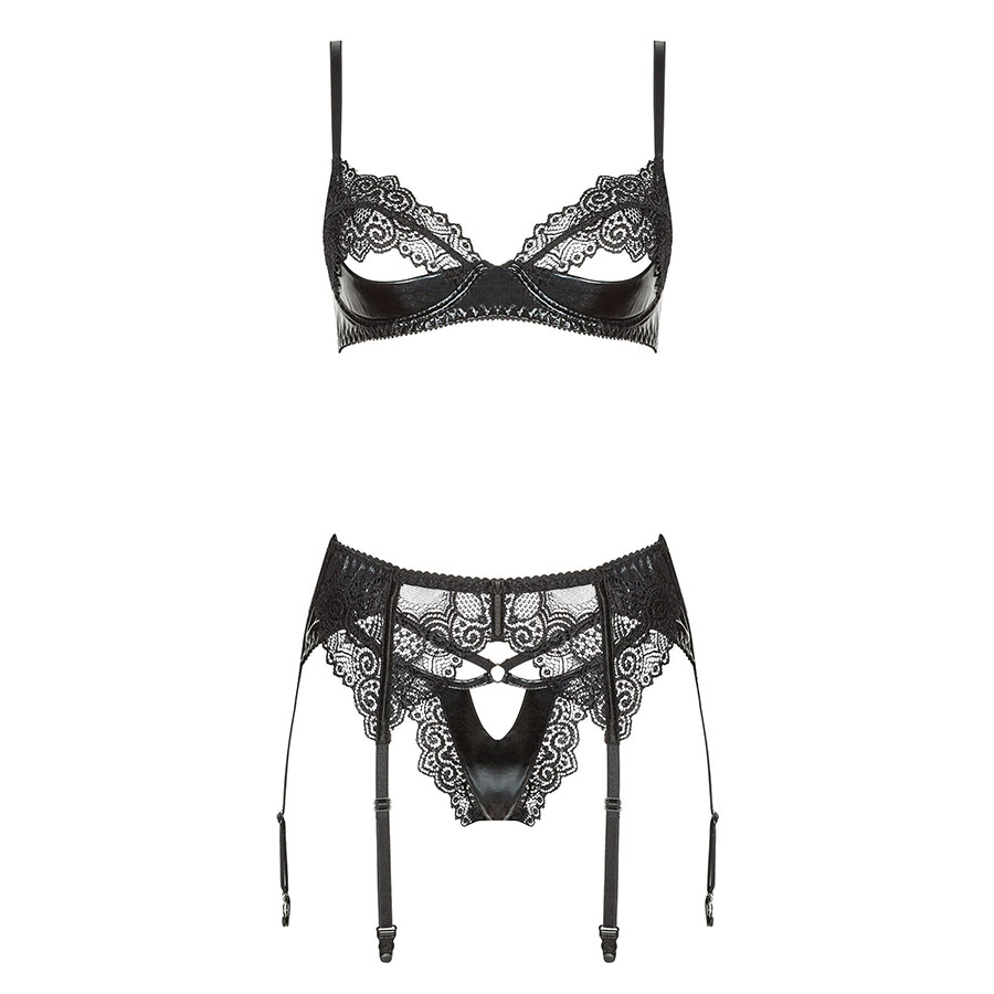 Beauty Night Marilyn 3-osaline pesukomplekt on valmistatud elastsest läikivast materjalist, mis on kombineeritud kütkestava musta pitsiga. Osaliselt avatud rinnahoidja ei jäta külmaks mitte ühtegi meesterahvast.