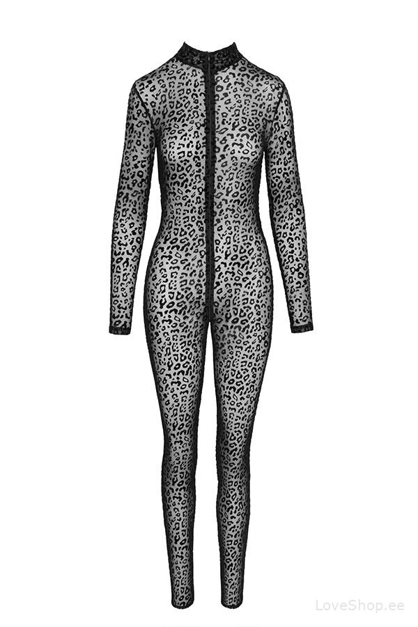 Noir Handmade F285 overall on valmistatud poolläbipaistvast tüllist, mida kaunistab sensuaalne leopardimuster.