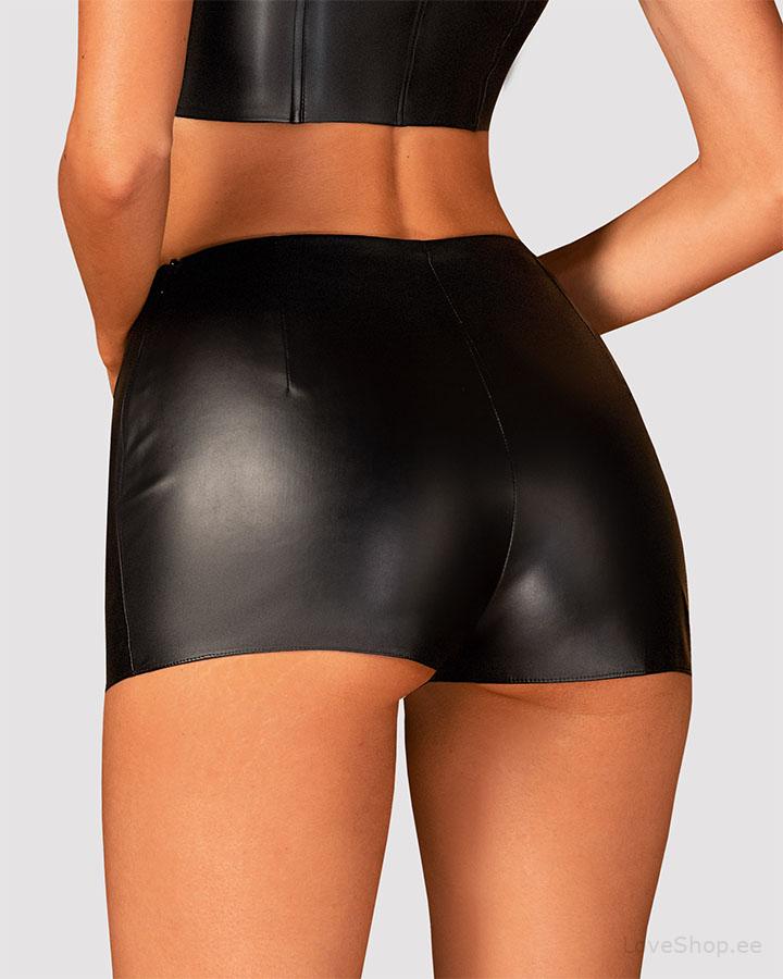 Ainulaadsed Obsessive Hermeza lühikesed püksid on kaasaegne ja väga naiselik aksessuaar, mis rõhutaavad imeliselt teie vöö ja talje piirkonda. Pükstel on optiliselt salendav efekt ja võrgutav wet-look ilme loovad naseliku ja ahvatleva kombinatsiooni.