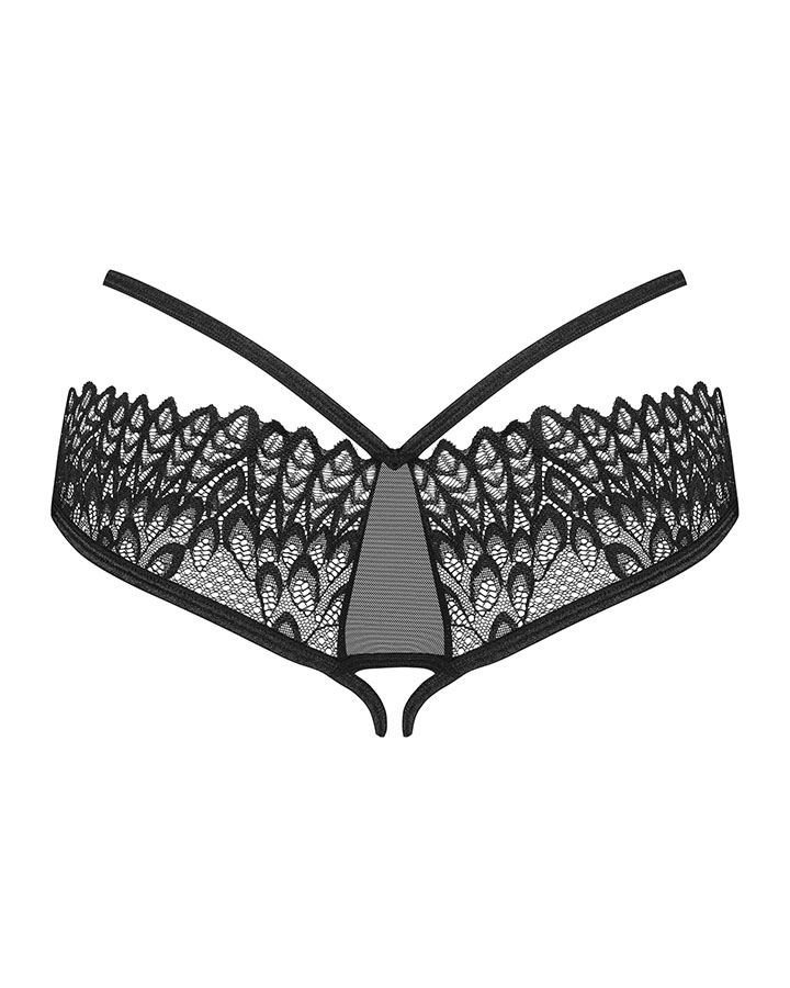 Obsessive Donarella avatud püksikud pakuvad sensuaalset võlu ja enesekindlust igale naisele. Need püksikud on kujundatud musta värvi kvaliteetsest kangast, mida kaunistavad õrnad pitsdetailid ja ahvatlevad avad.