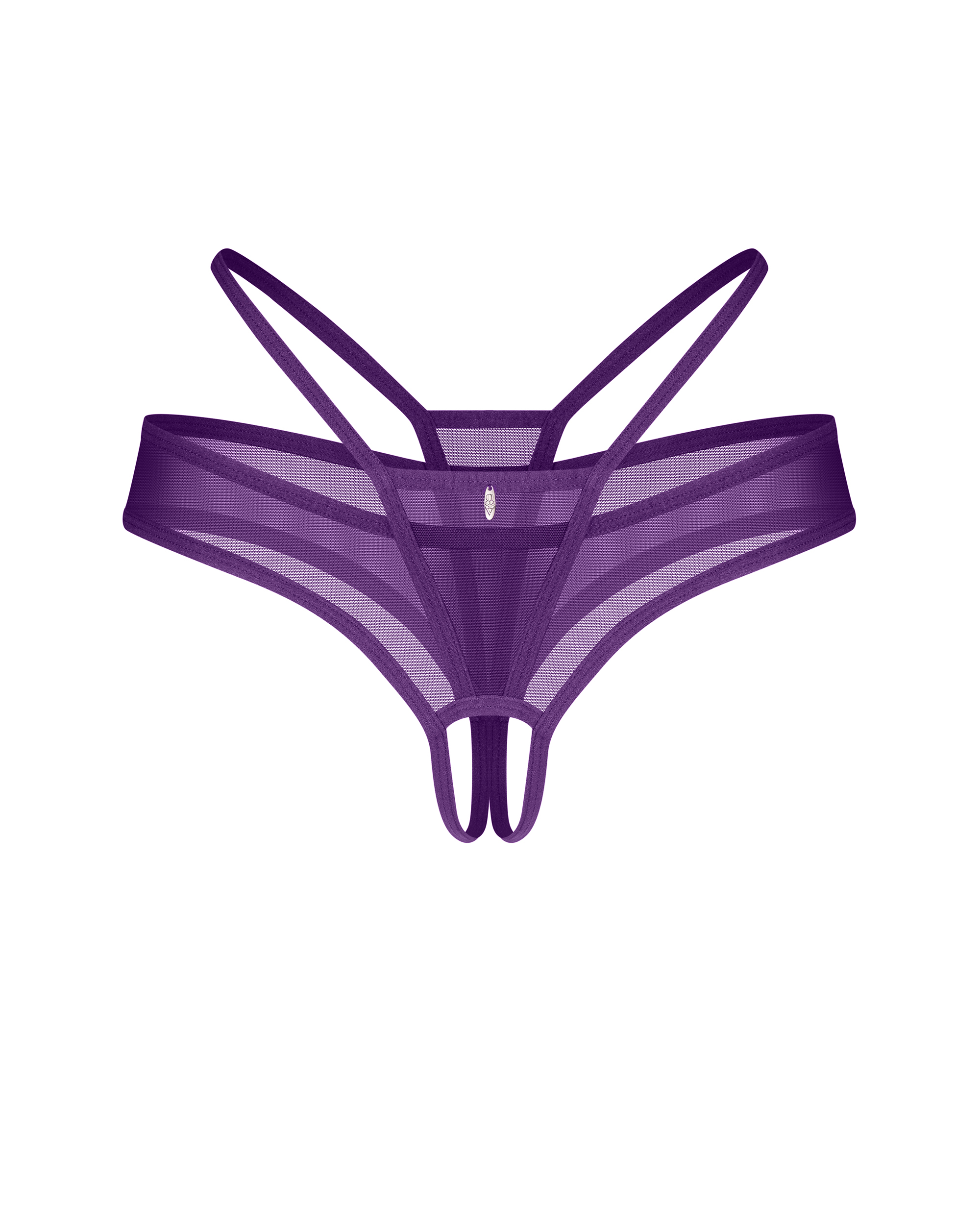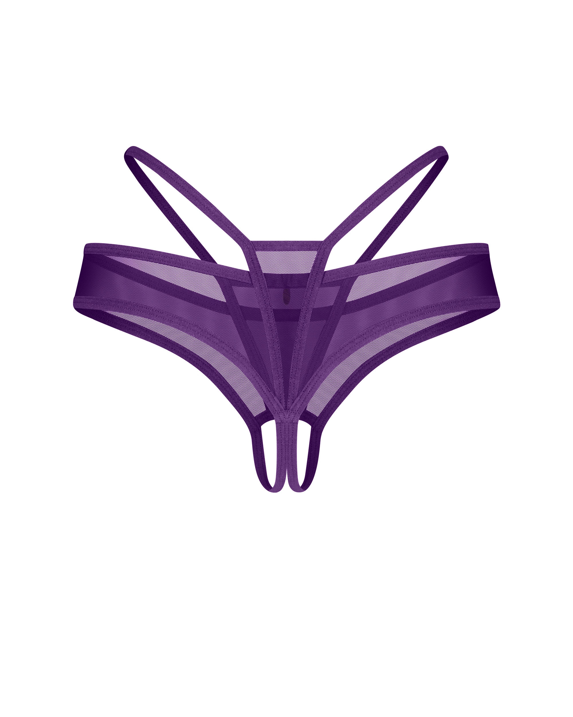 Avatud stringid Obsessive Vibres on mõeldud naistele, kes armastavad mängulisust ja enesekindlat sensuaalsust. Julge sügavlilla toon sulandub läbipaistva võrguga, mis hellitab nahka ja lisab kandjale õrna, kuid samas kütkestava välimuse. Iga detail on hoolikalt läbi mõeldud, et tuua esile keha loomulikud jooned ja lisada kandmisele põnevust.