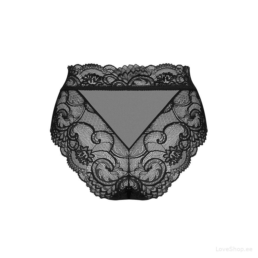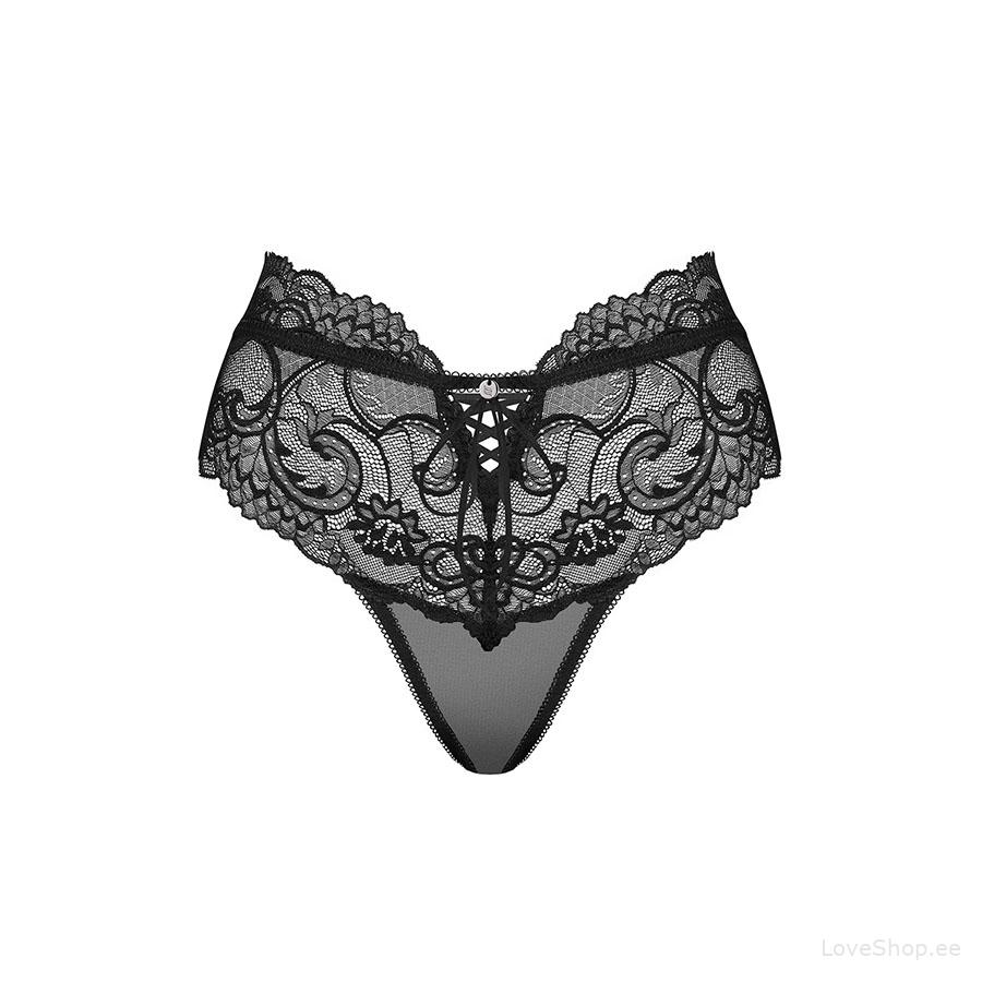 Obsessive Elizenes kõrge pihaga püksikud on valmistatud mugavast mustast materjalist ning kaunisatud sensuaalse ja ahvatleva lillemotiivilise pitsiga, mis muudab teie jalad pikemaks ja toob tuharad esile.