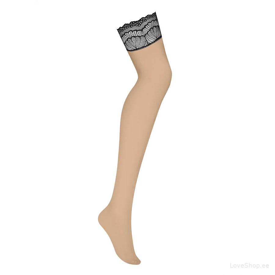 Obsessive Isabellia sukad on elegantse ja aegumatu disainiga, mistõttu sobivad kandmiseks igapäevaselt või erilisematel sündmustel. Sukad on beežikat tooni, mille reie osa on kaunistatud mustast pitsiga.