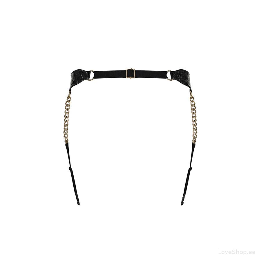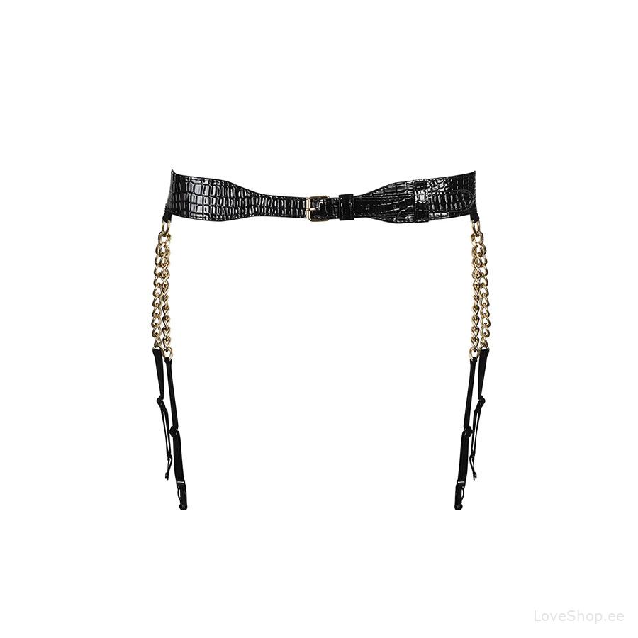 Obsessive A767 sukahoidja on valmistatud nahalaadsest materjalist ning sukahoidjad on osaliselt asendatud kuldsete kettidega, mis muudavad teid eriti kelmikaks ning vastupandamatuks.