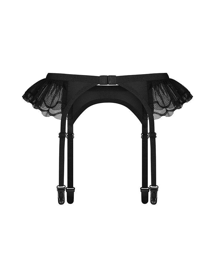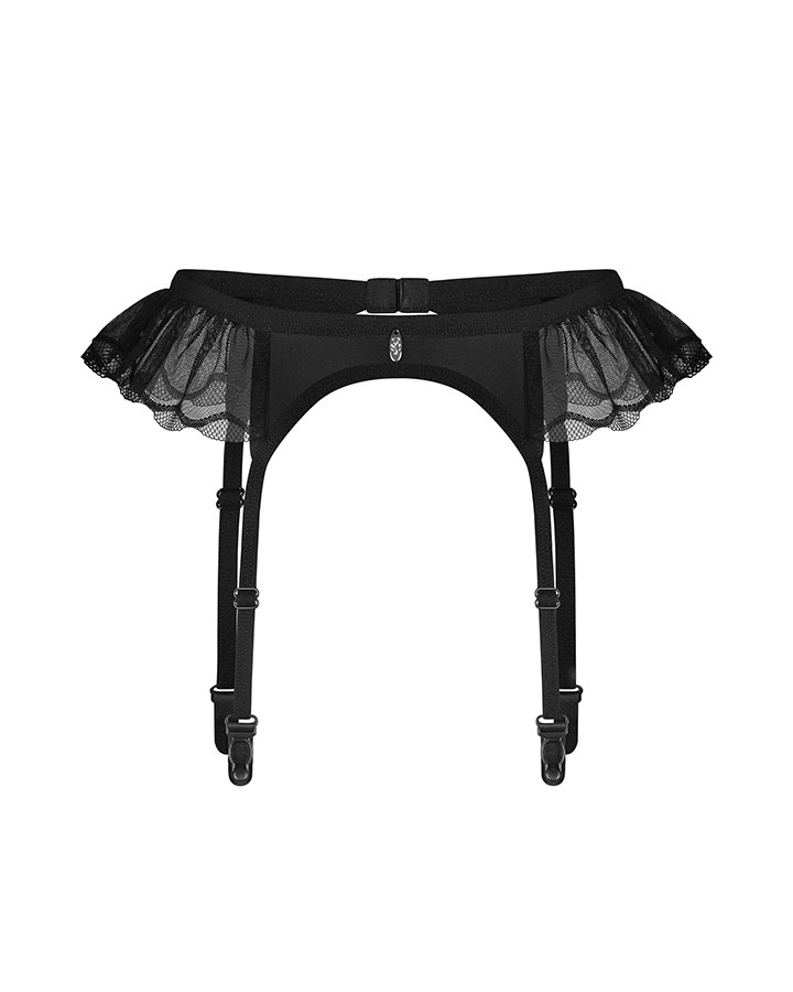 Sukahoidja Obsessive Stelisa ühendab klassikalise elegantsi ja modernse disaini, luues vastupandamatu ja naiseliku välimuse. Selle musta sukahoidja läbipaistev tüll ja õhuline volang lisavad kergust ja sensuaalsust, samas kui peened detailid rõhutavad naiselikku siluetti. Sukahoidja sobib ideaalselt kokku samast kollektsioonist pärit sukkadega, et luua harmooniline ja võrgutav komplekt.