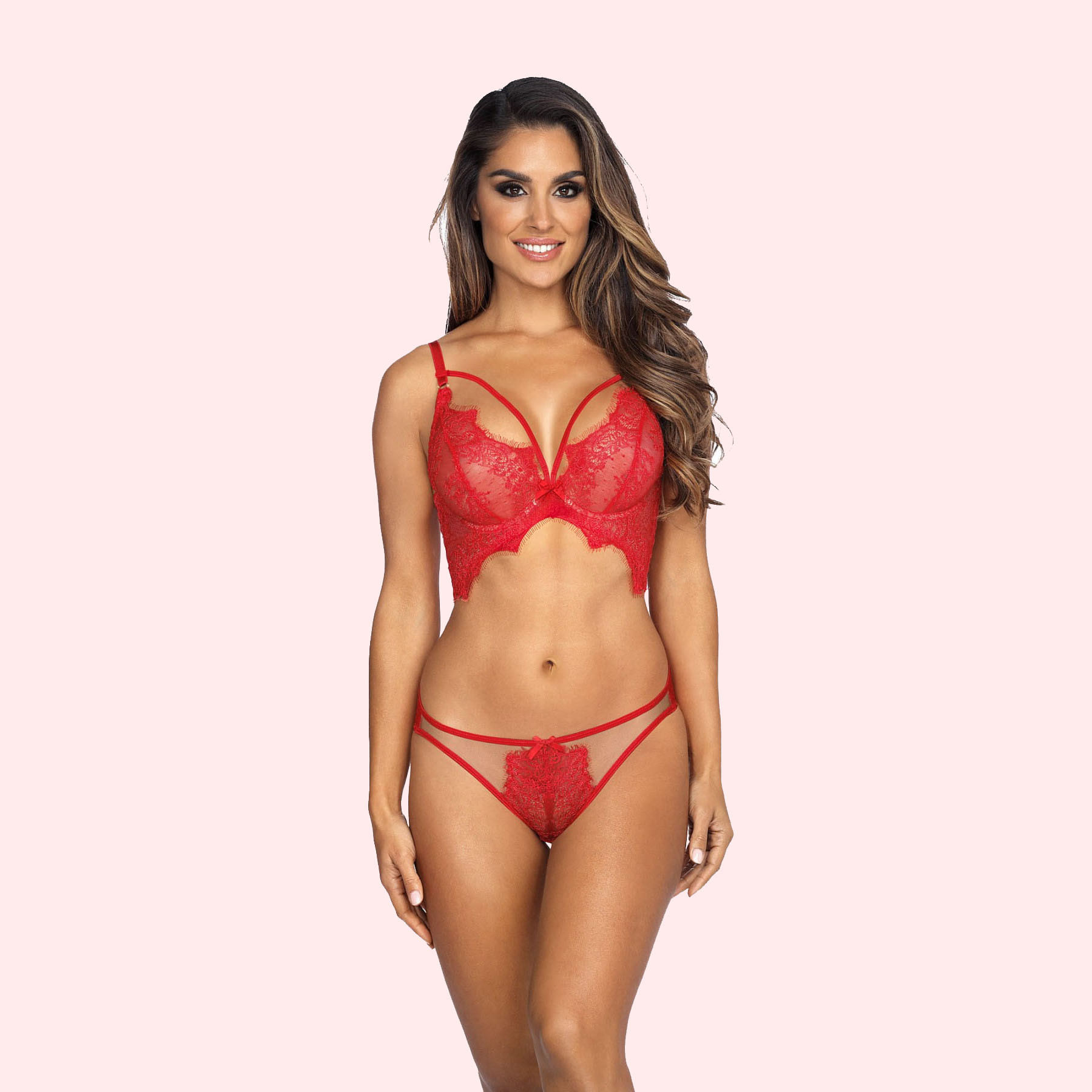 Poolkorsetiga sobivad kokku tootefotodel olevad punased stringid V-9588. Lisaks sama toode on saadaval ka rukkilille sinist värvi, selleks tutvu sinise poolkorsetiga V-9611 ja stringidega V-9618.