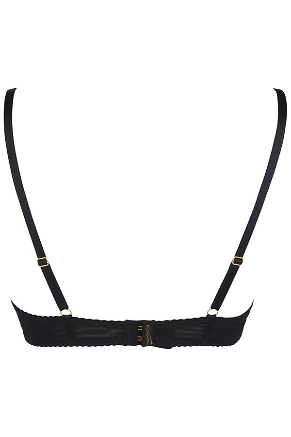 Rinnahoidja alutraatidega, mis tagab parima hoidmise ning dekolteel mustad risti rihmad toovad esile rinnad. Tagant astmeline kinnitus, õlapaeladest reguleeritavus ja elastne materjal tagab ideaalse sobivuse.