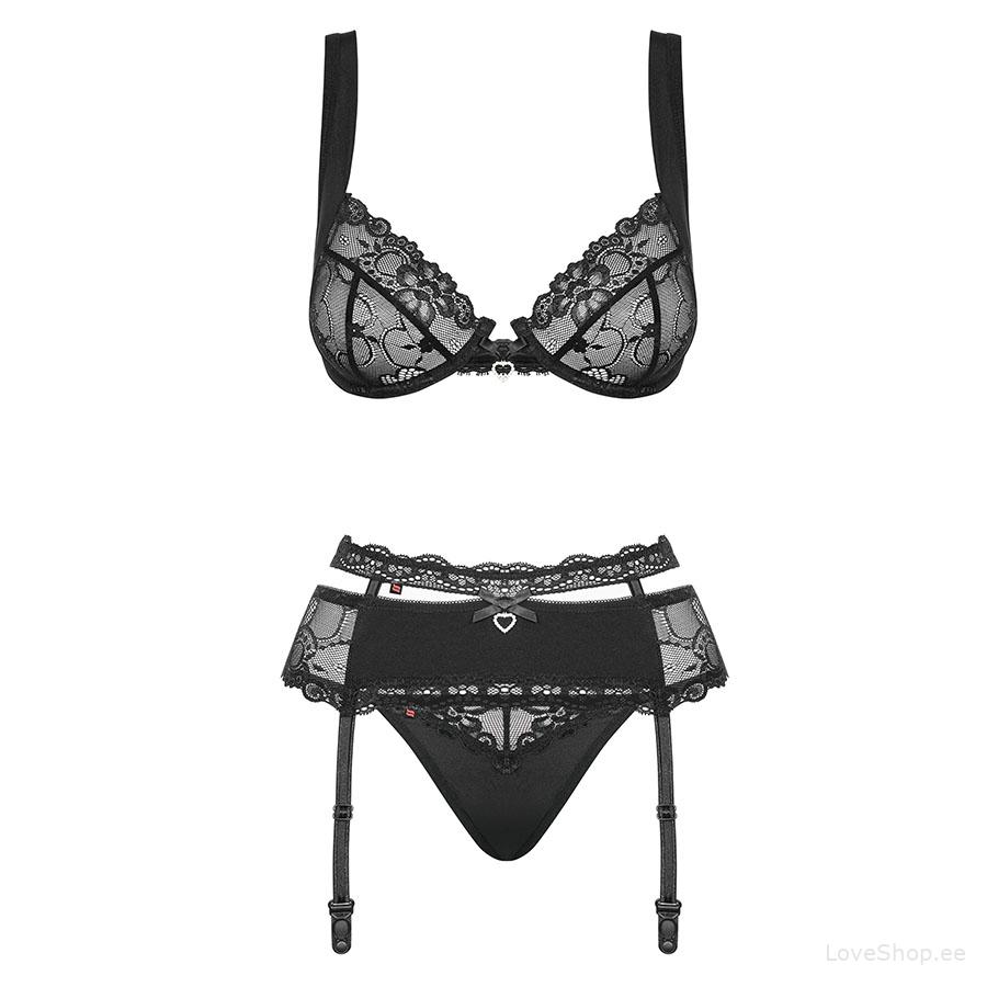 Komplekt sobib ideaalselt kokku Obsessive S800 mustade sukkadega.