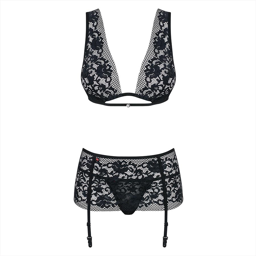 Mustast pitsist 3-osaline pesukomplekt Obsessive Figurea