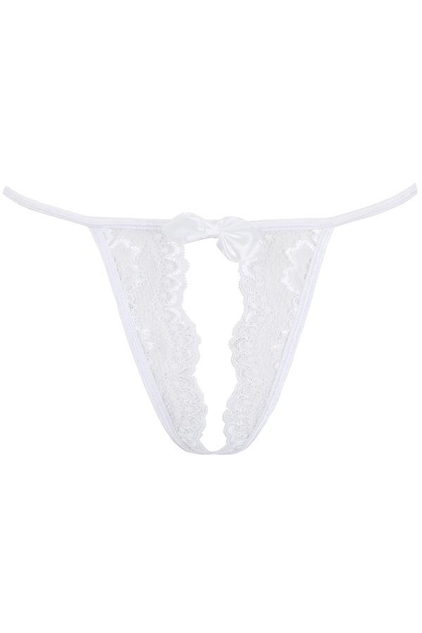 Elastsed paelad tagavad, et need stringid istuvad teie kehal kui teine nahk, pakkudes samal ajal ülimat mugavust. Avatud detailid nii ees kui taga lisavad intriigi, samal ajal kui õrn valge lipsuke ees rõhutab naiselikku ilu ja figuuri.
